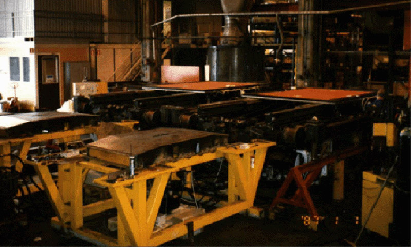 In the picture you can see the sleds with the cushions inflated and they form the base that lifts all the unit loads. The yellow construction can replace the truck in the test bench. We had also connected advanced electronics to monitor all the loads on the test equipment's construction.