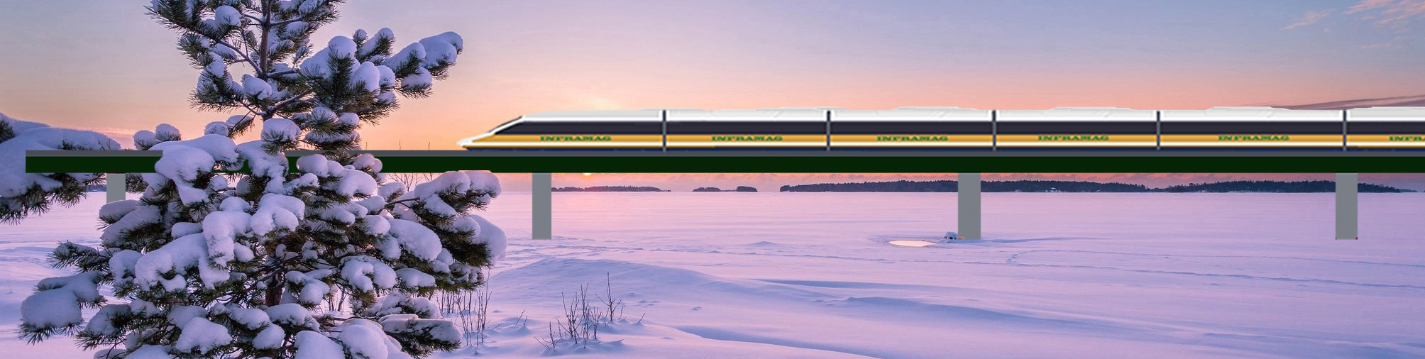 samma typ av höghastighetsbanan och trafiken vintertid ger inga problem. Bärningen av tåget sker med permanentmagneter och de påverkas inte av snö, is eller vatten.