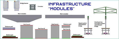 On the left is a sketch showing the elements included in a modular design of the construction components for high-speed tracks for high-speed trains.