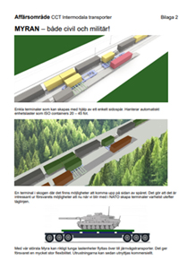 We have gathered our thoughts, how to help build an efficient transport system with rail transport as a base and with the "ant" as a transmission technology. To reload NATO material anywhere along the railway line. Click on the heading "NATO Annex 2" and you can download a pdf file of our Annex 2.