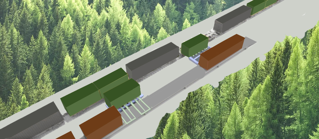 A very important thing that we learned from our prototype and many tests was that: Where there were requirements for speed, regular traffic and low terminal costs, the following was required: The handling equipment should be on a separate vehicle and be attached to the terminal and not to the distribution vehicle. With the transfer mechanism on the distribution vehicle, a mutual dependence is created and requires that both the railway wagon and the transfer vehicle be on site at the same time. Otherwise, costly additional costs arise. That is why we have created the new ant that is completely autonomous and only operates at the terminal!