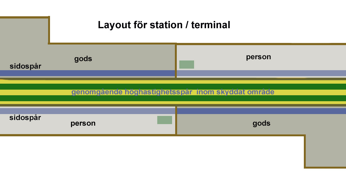 Internet freight will of course increase and will place increasingly higher demands on fast transport. For Sweden with its low population base, it will be of interest to combine people and fast internet freight. It is possible to create very interesting and relatively large terminals with a large flow of both passengers and freight through the common terminals.