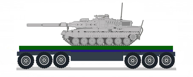Ant that has propulsion on rubber wheels. This allows it to operate directly on the side of the railway track as long as there is hard ground as a base. The ant is very flexible because the driven wheels can be set in a straight direction, 90 degrees to the left or 90 degrees to the right. (Of course everything in between.) This makes this ant very flexible. Here in a special version for longer, wider and heavier loads. This means that it can even handle tanks for transport on rail. Should be interesting for NATO
