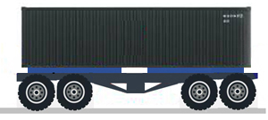 The ant, track-mounted and where a load transfer equipment is movable in the longitudinal direction of the ant. This means that it can handle both 20 foot units and longer units, 40 - 45 feet. A very flexible and useful ant. The ant is powered by electric motors. It is this version that is featured in our animation.